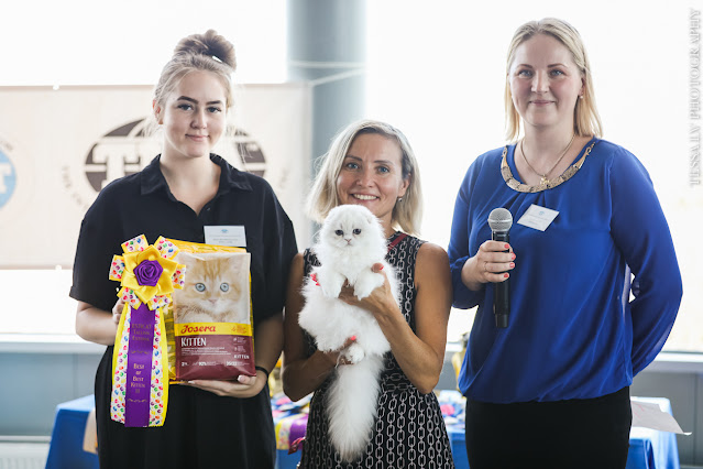 Во второй день проводились только AB ринги. Тобишь никого не делили по группам шерсти, а соединили в один ринг с количеством, как и в первый день - 17 котят. Мари Лиз дала 4 место, а у Елены мы стали абсолютными победителями - 1 место.